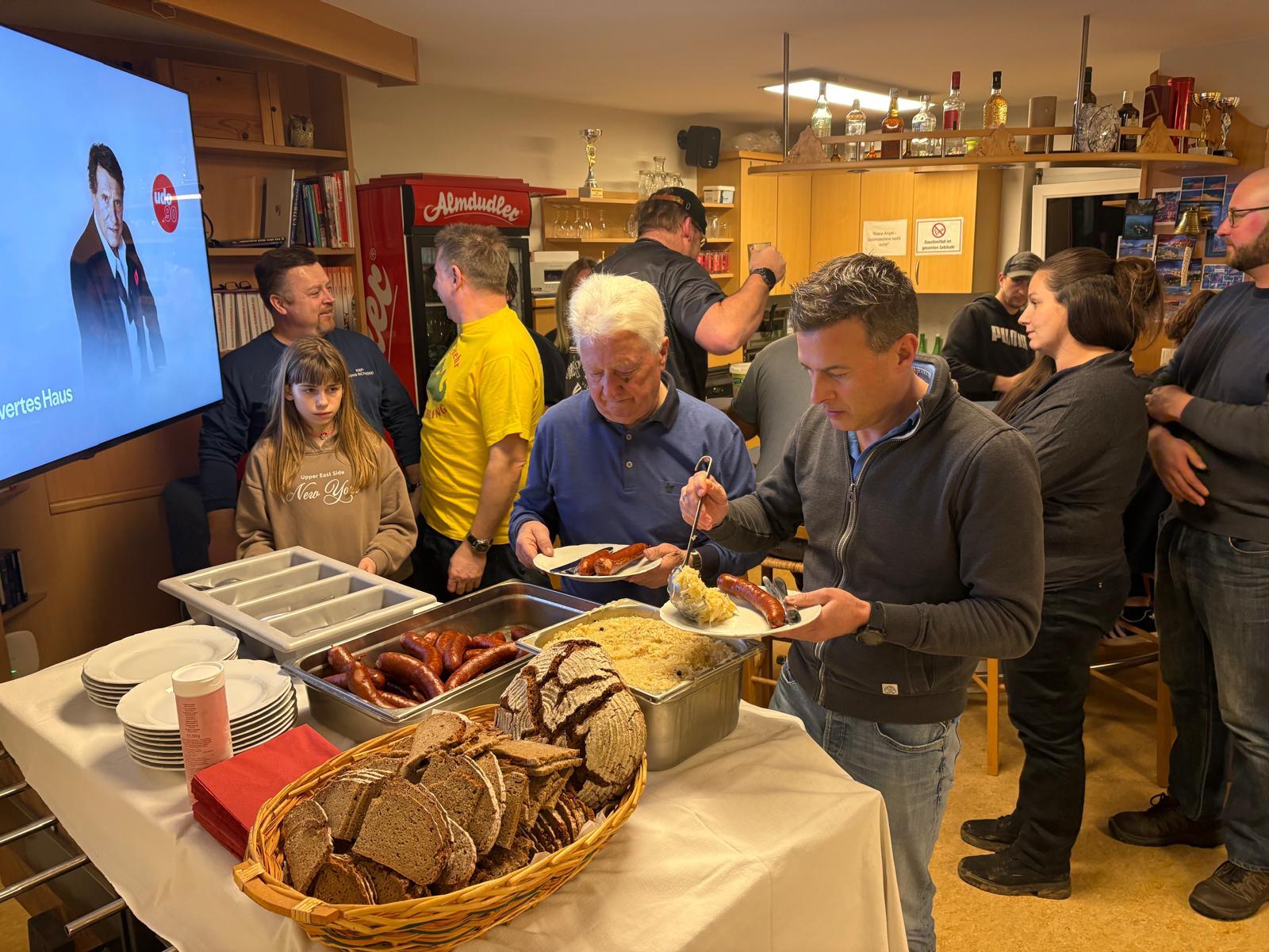 Für die nötige Stärkung sorgten köstliche Selchwürste mit Sauerkraut, Kren und frischem Bauernbrot. Ein herzliches Dankeschön geht an alle, die mit ihren selbstgemachten Nachspeisen für den süßen Abschluss des Abends gesorgt haben.