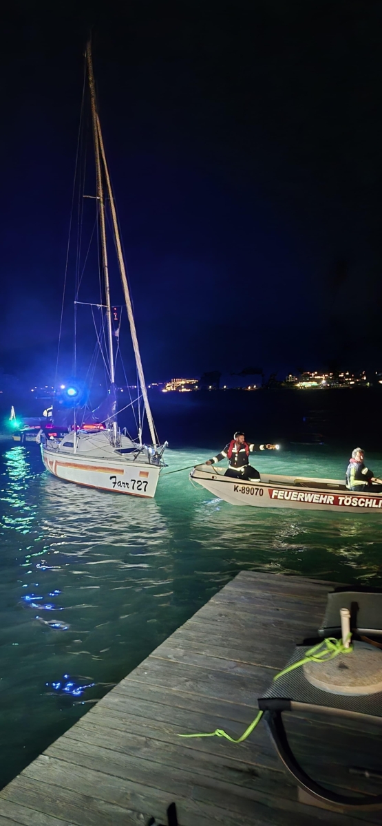 Durch die straken Gewitter trieb ein Segelboot herrenlos am Wasser.
