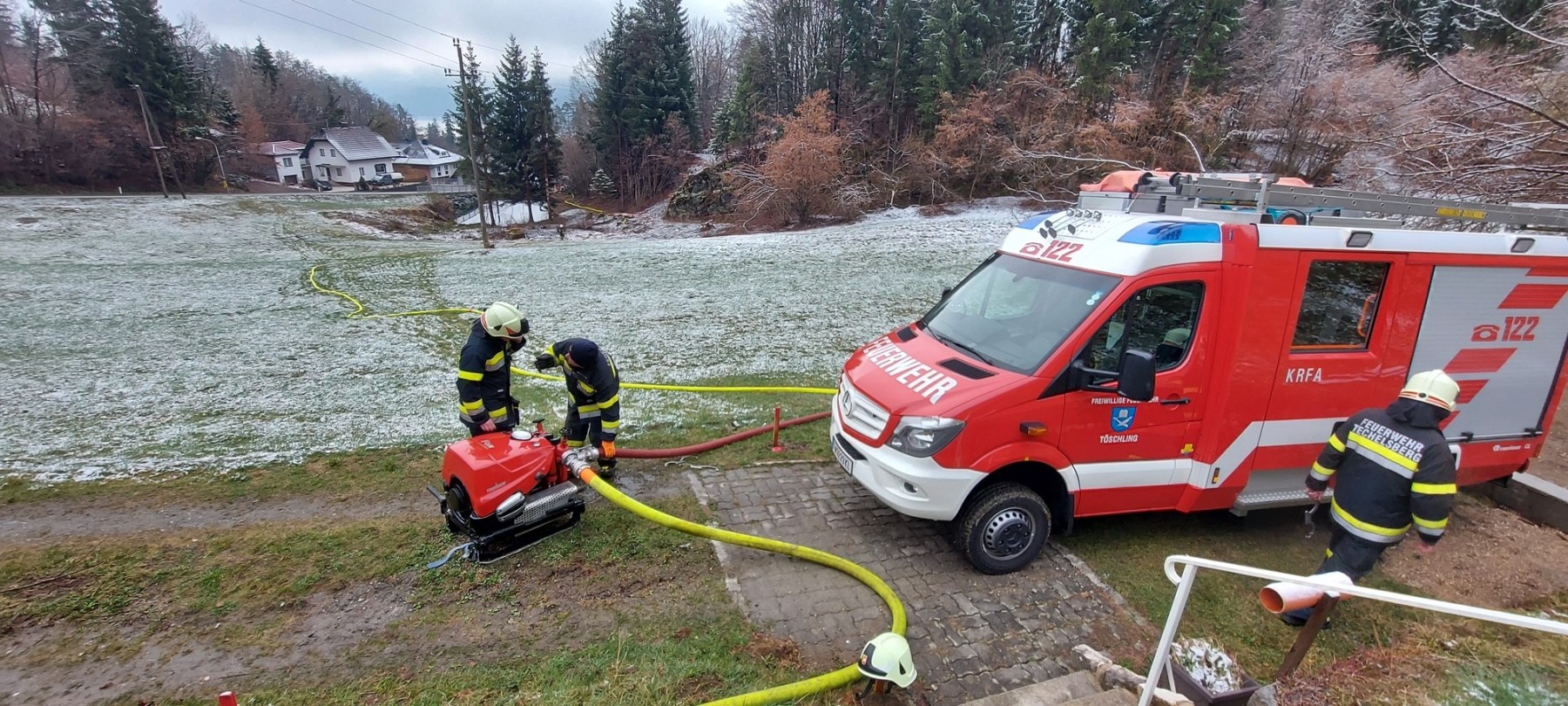 Eine Wohnhausanlage in Sekull wird abgerissen! Dies haben wir ausgenützt und gemeinsam mit der FF Techelsberg und FF Pörtschach eine Brandübung durchzuführen. Wasserbezug wurde über das Hydranten-Netz der Gemeinde und von einem Teich aufgebaut – Mehre Brandwiderstandslinien wurden aufgebaut – Innenangriff mit Atemschutz wurde geübt. Natürlich darf eine Versorgung im Anschluss an die Übung nicht fehlen.