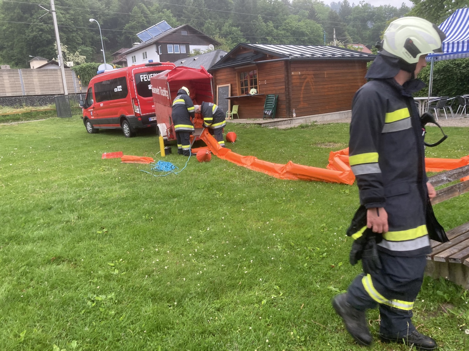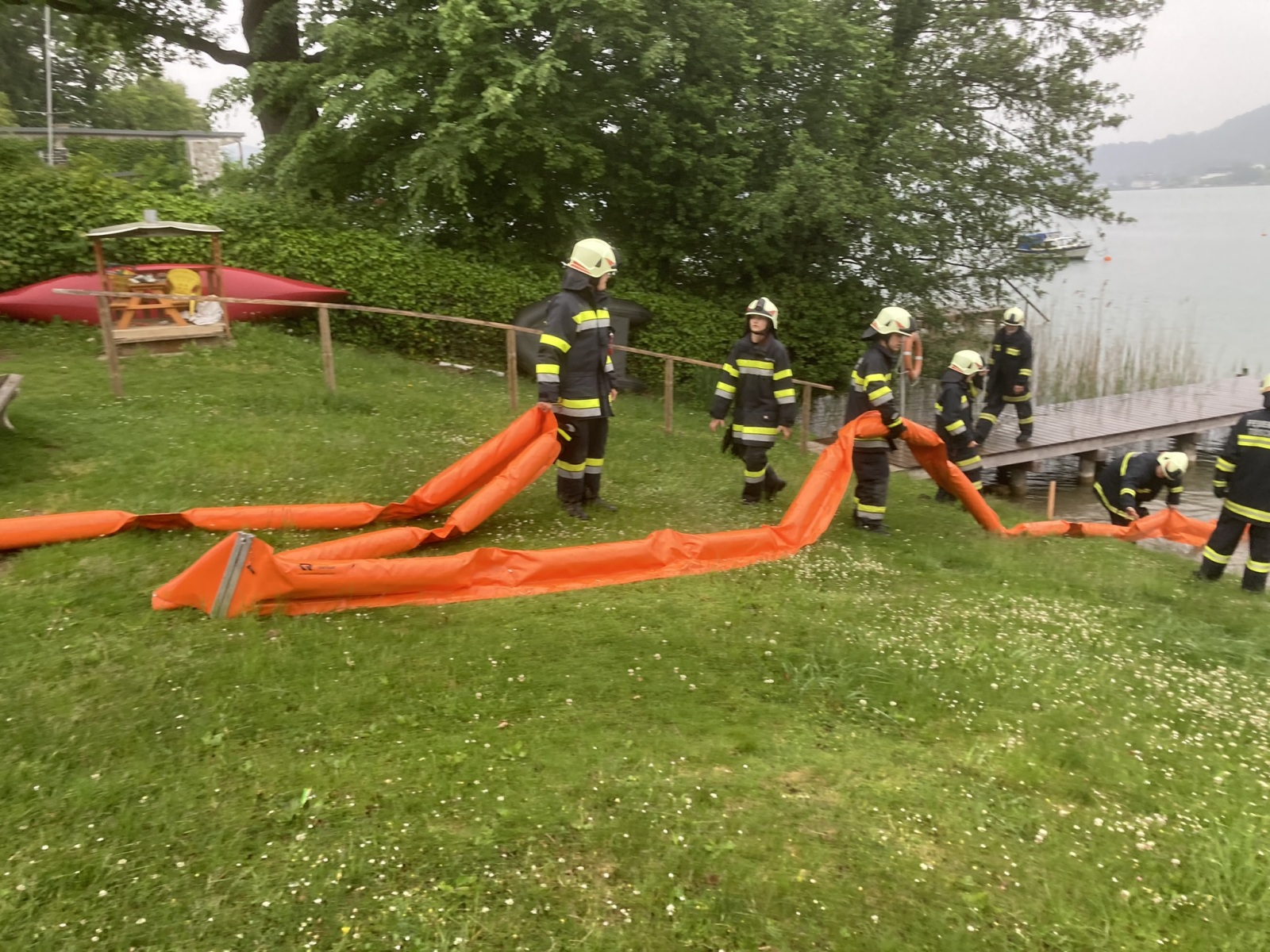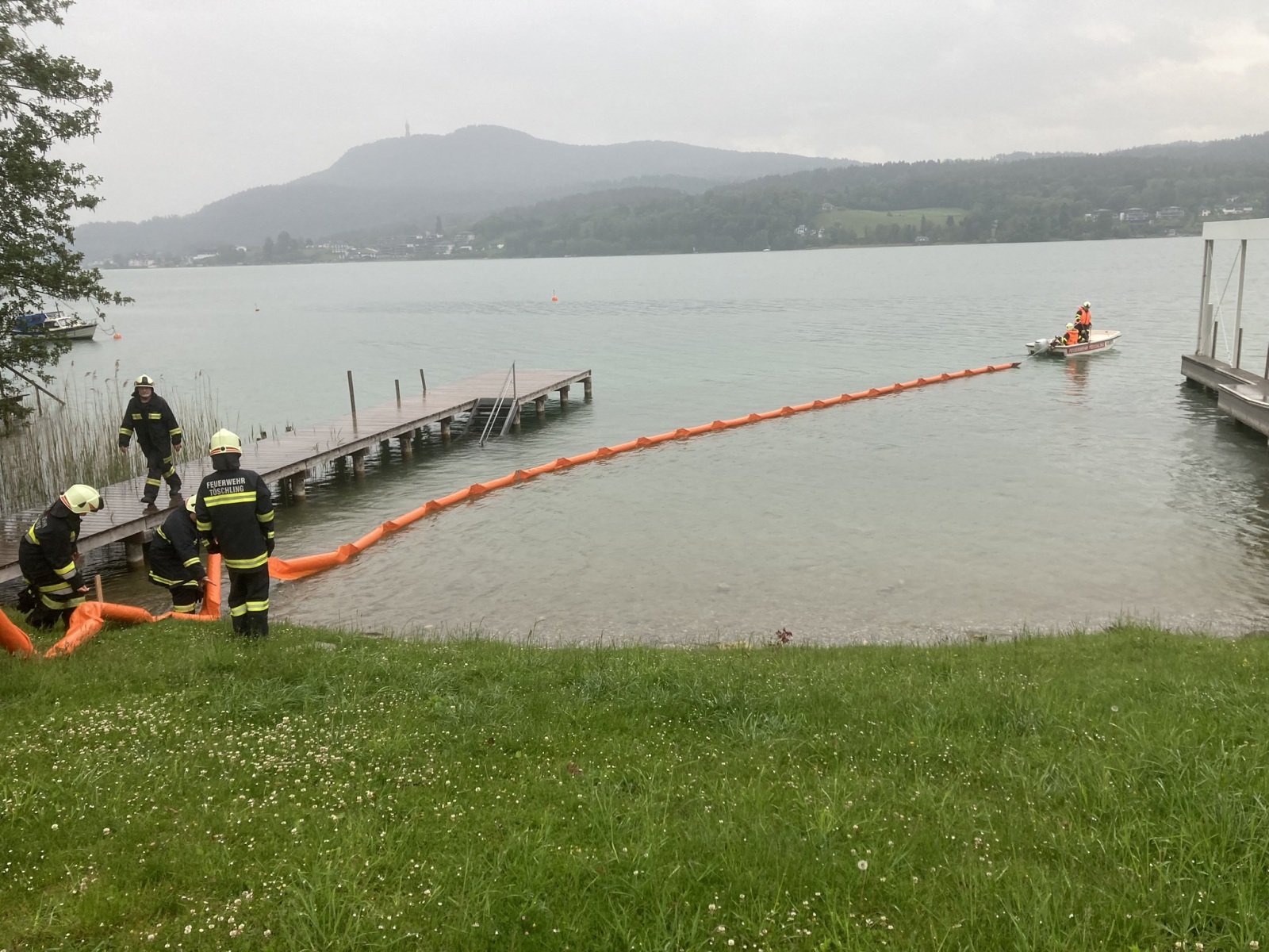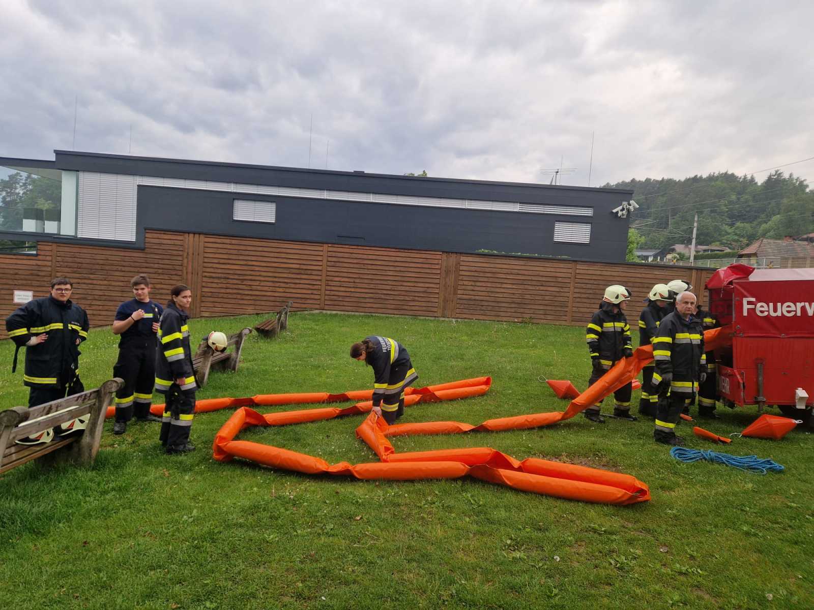 Am Mittwoch, den 19. Mai 2024, um 19 Uhr fand eine Einsatzübung zum Thema Wasserdienst statt. Übungsannahme war ein Ölaustritt, der über ein fließendes Gewässer (Bach Nr. 52) in den Wörthersee gelangen würde. Die Aufgabe der Einsatzkräfte bestand darin, die Bachsperre zu aktivieren und dabei das Öl abzufangen. Gleichzeitig wurden Ölsperren im Bereich der Bachmündung eingebracht, um eine Ausbreitung des Öls in den Wörthersee zu verhindern.